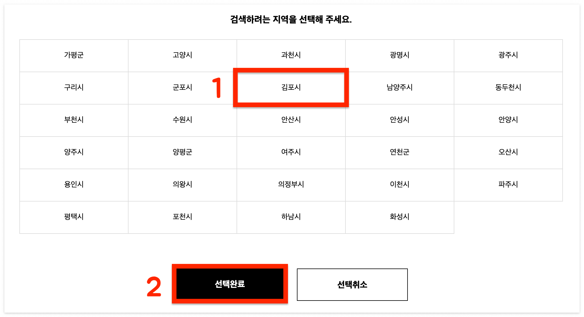 2️⃣ 사용처를 검색할 지역을 선택해 주세요.