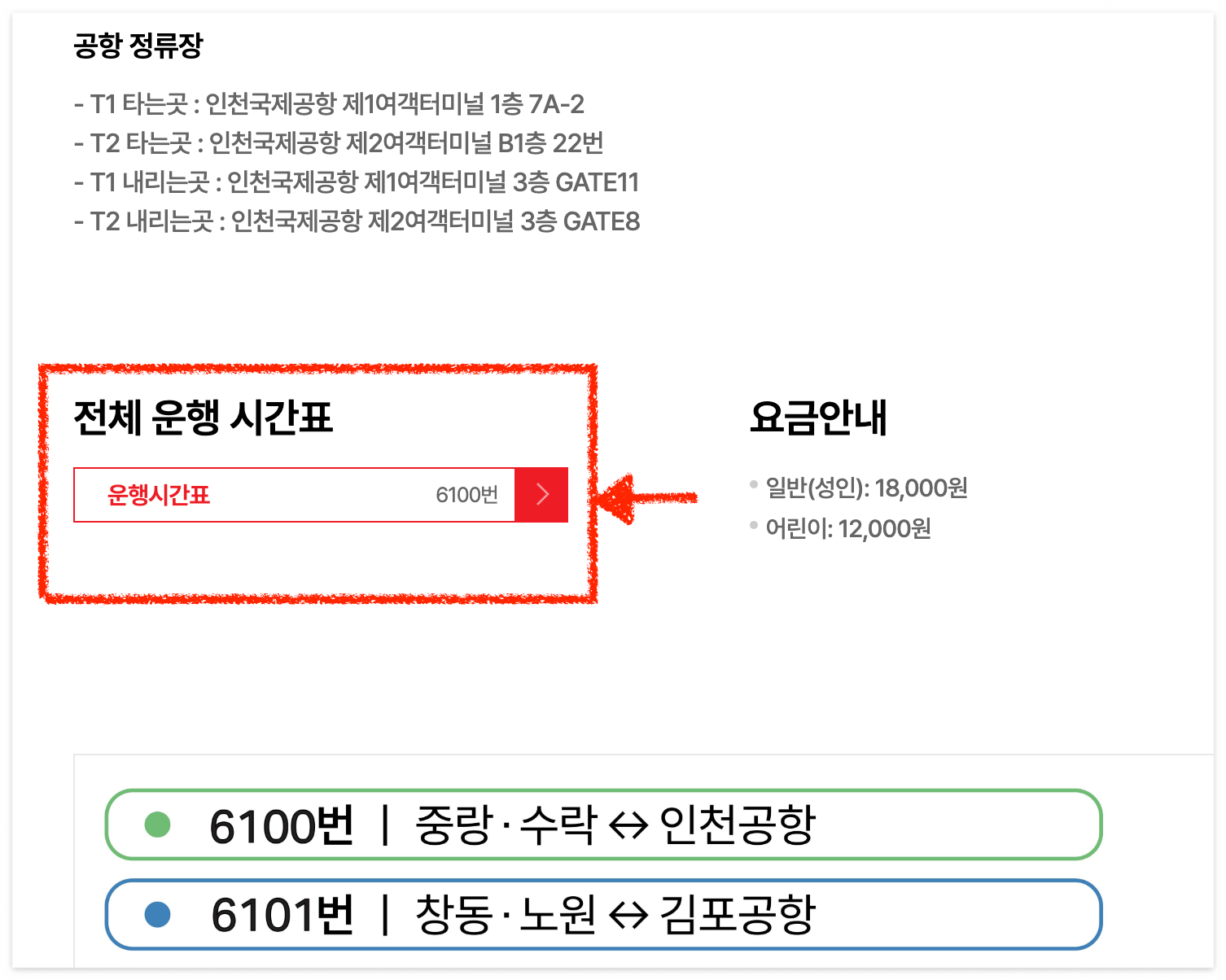 한국도심공항에서는 현재 6100, 6101, 6102, 6103, 6104, 6105 노선과 시간표를 확인할 수 있습니다.