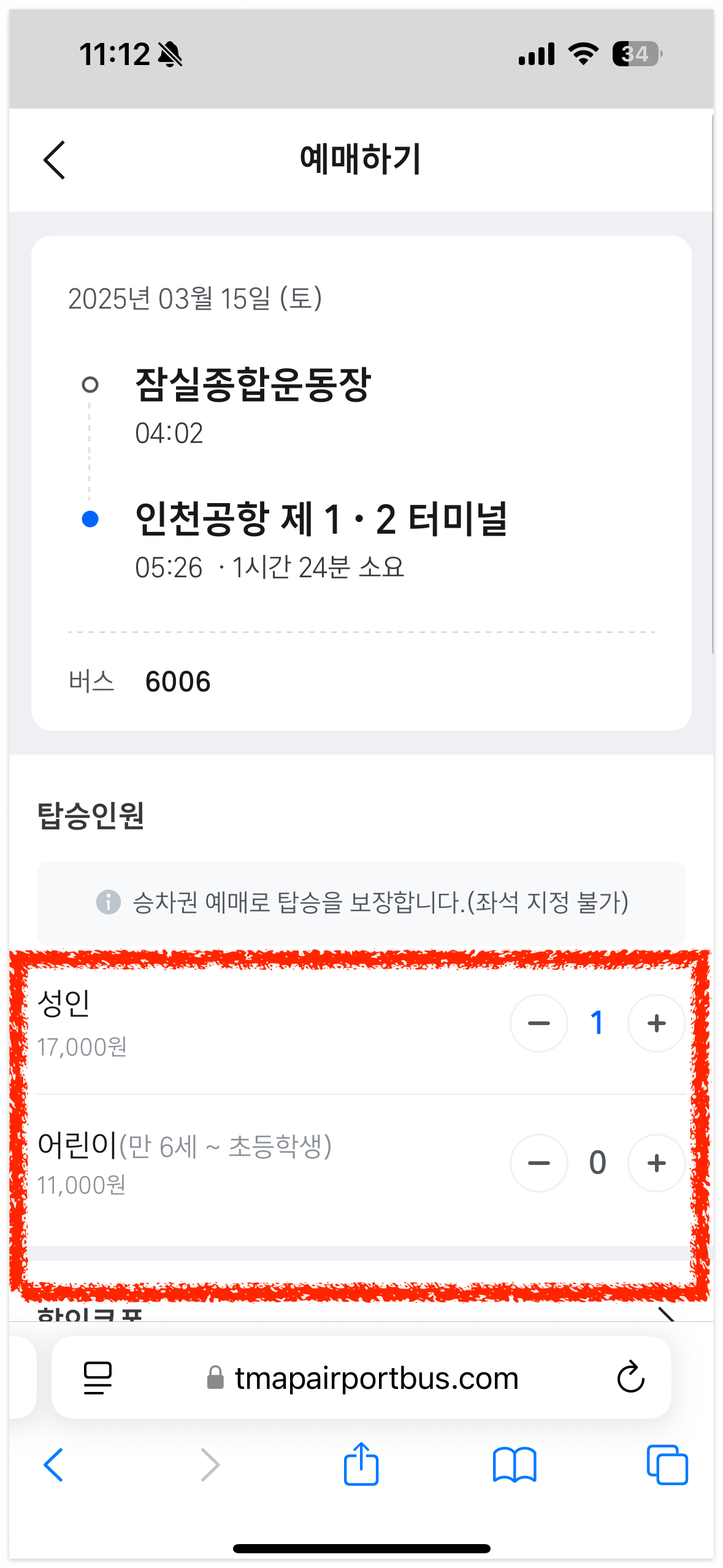 4️⃣ 탑승 인원을 선택하고 결제하면 완료!