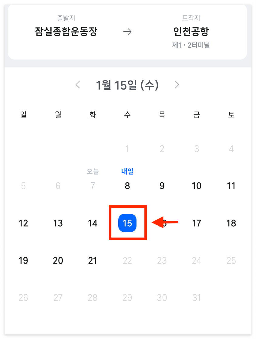 3️⃣ 탑승 날짜와 시간 선택하기