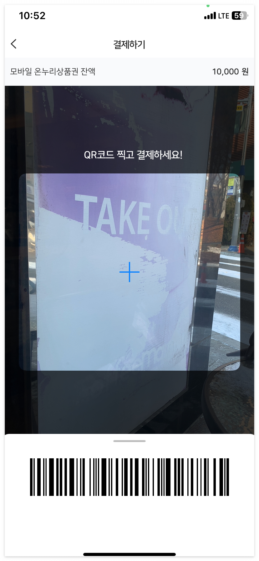 온누리상품권 가맹점에는 결제할 수 있는 QR코드가 따로 배치되어 있습니다. 휴대폰 카메라를 통해 QR 코드를 찍으면 결제가 끝납니다.
