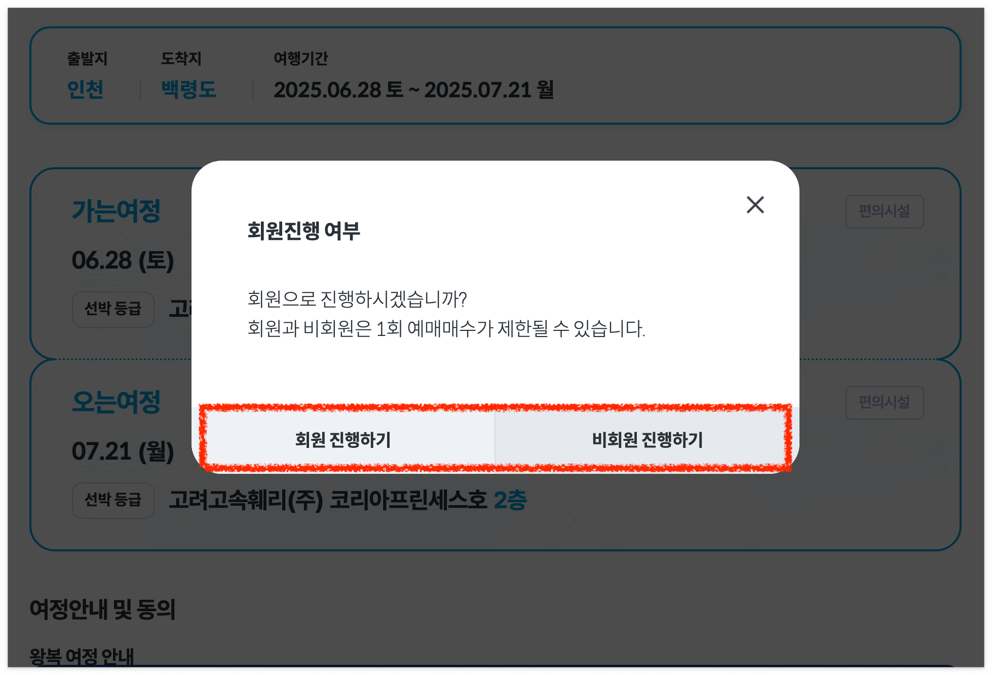 - 비회원 예매를 할지, 회원예매를 할지 선택합니다.
