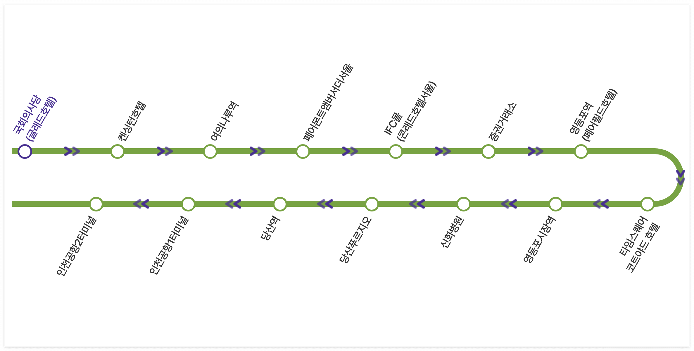이제 탑승할 노선을 선택해 주셔야 하는데요. 저는 이번에 여의도에서 인천공항 가는 방면을 선택해 보겠습니다.
