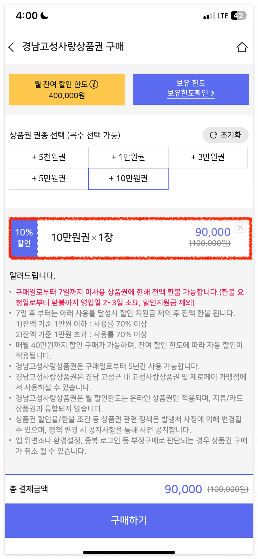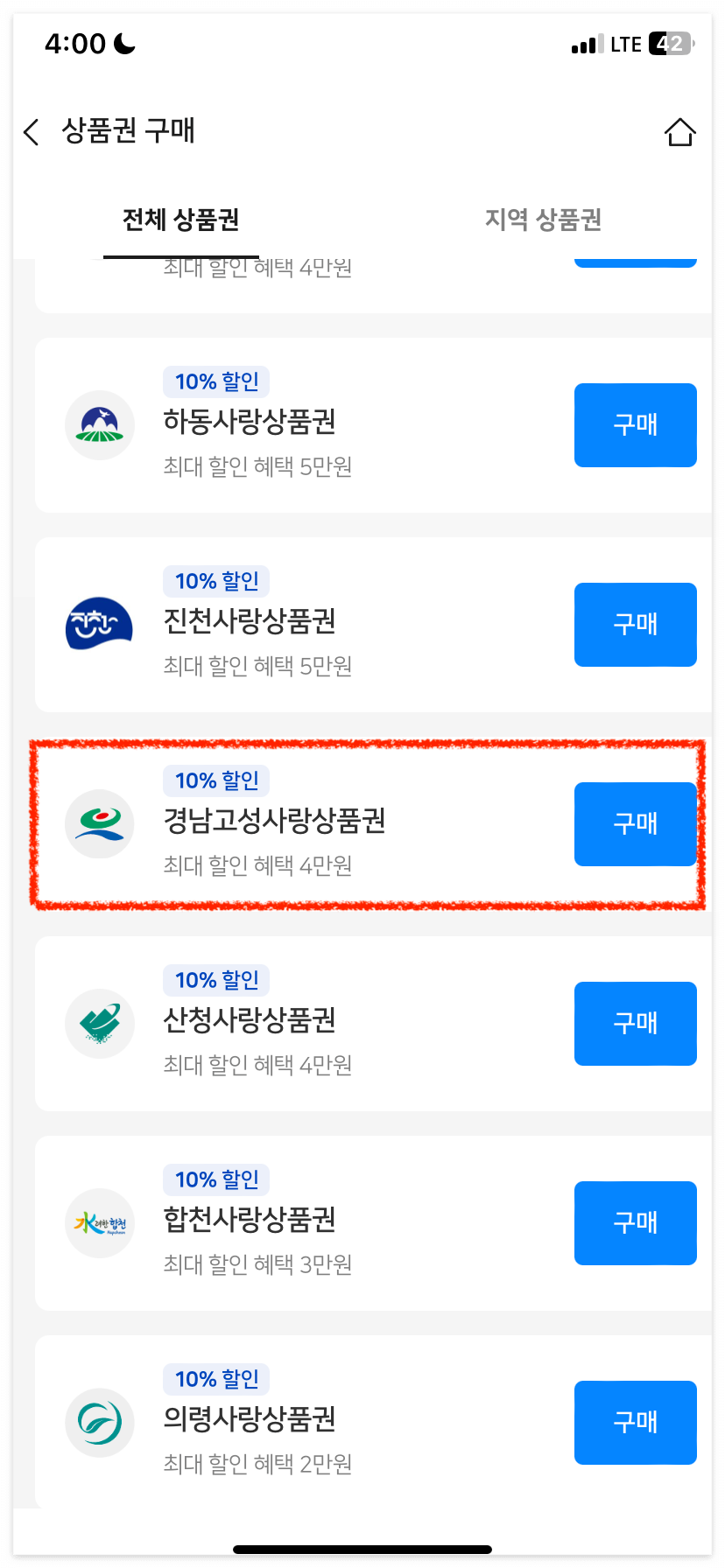 4️⃣ 경남고성사랑상품권 구매하기