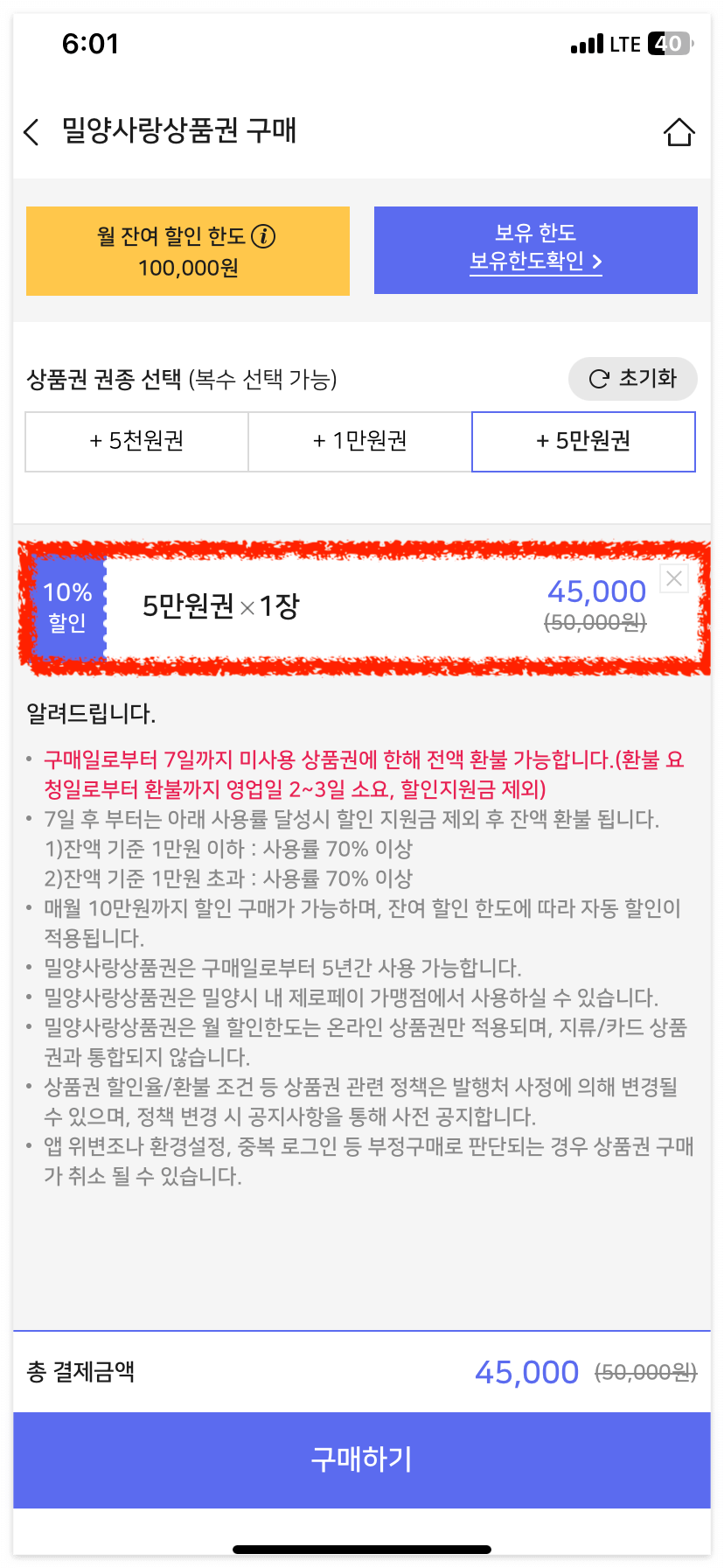 오늘은 모바일 밀양사랑상품권 구매 방법에 대해 알아보았는데요. 현재 10% 할인된 가격에 구매할 수 있다고 하니, 이번 기회에 꼭 구매해 보셨으면 좋겠습니다. 긴 글 읽어주셔서 감사합니다!